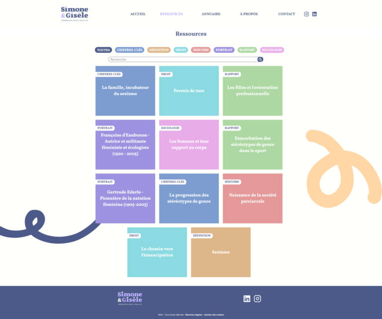- Développement spécifique : page « ressources » avec filtres